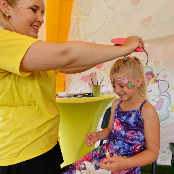 Ansiktsmålningen är öppen ca 14:00 – 16:00 – Festivalflätor ca 16:15-17:30 (kön stänger ca kl 17:00)