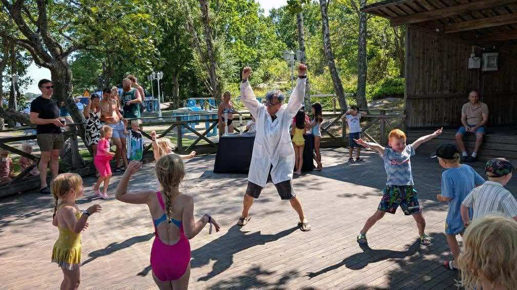 Hela spektaklet avrundas på dansgolvet tillsammans med den galna professorn – som inte bara älskar experiment, utan även att skaka loss till disco-dängor!